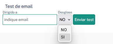 Si no ha sido exitoso, podemos ver el detalle del error volviendo a enviar pero seleccionando la opción de desglose "SI" antes de pulsar "Enviar test"